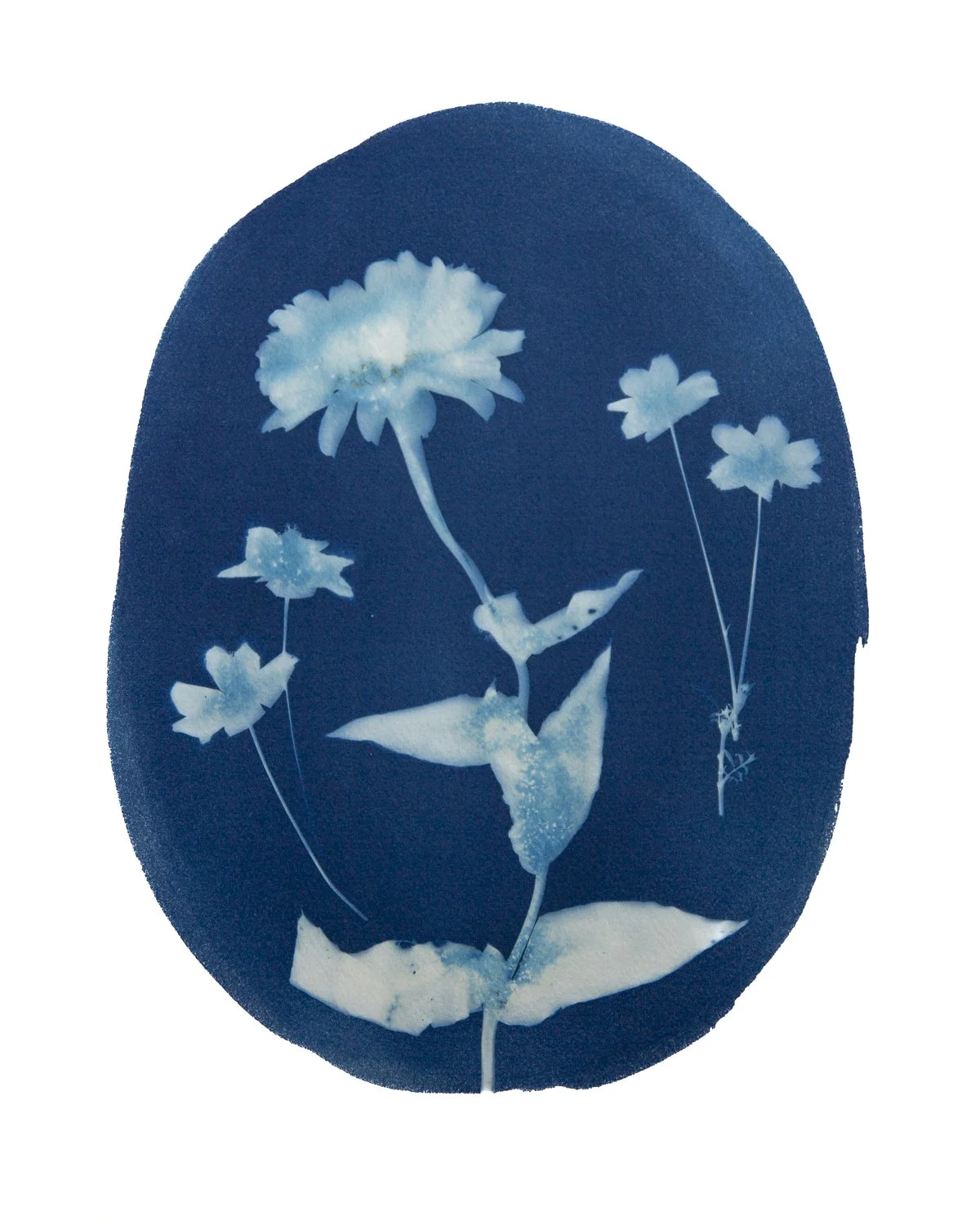 The image is taken from a high-resolution scan of an original cyanotype created on watercolor paper, preserving the depth of indigo tones and botanical detail of the handmade process.
