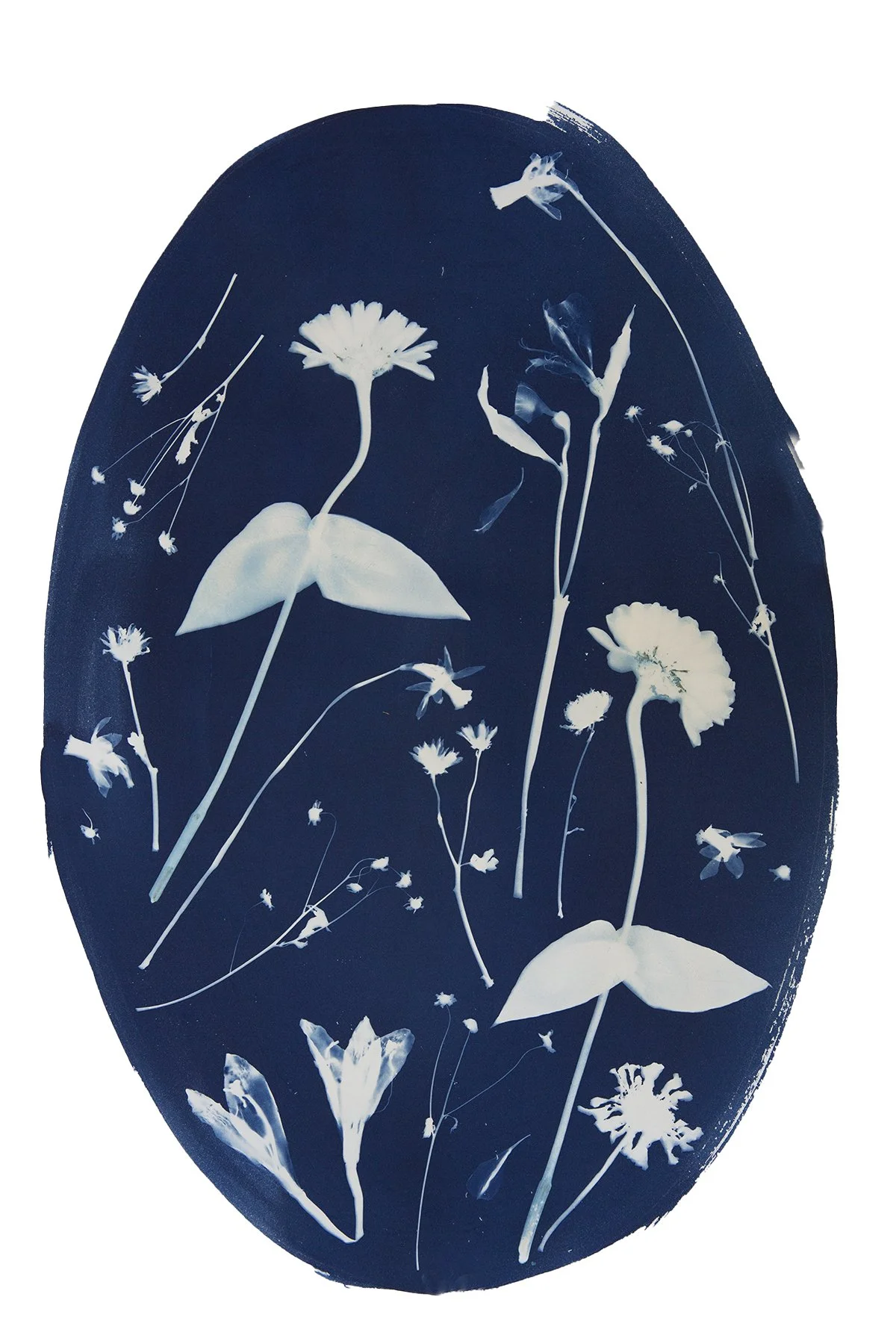 The image is taken from a high-resolution scan of an original cyanotype created on watercolor paper, preserving the depth of indigo tones and botanical detail of the handmade process.