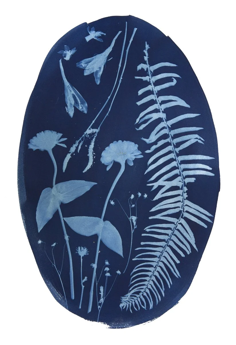 The image is taken from a high-resolution scan of an original cyanotype created on watercolor paper, preserving the depth of indigo tones and botanical detail of the handmade process.
